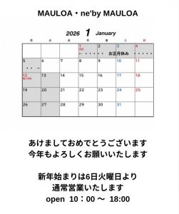 1月の定休日と営業時間のお知らせ 中西英美子