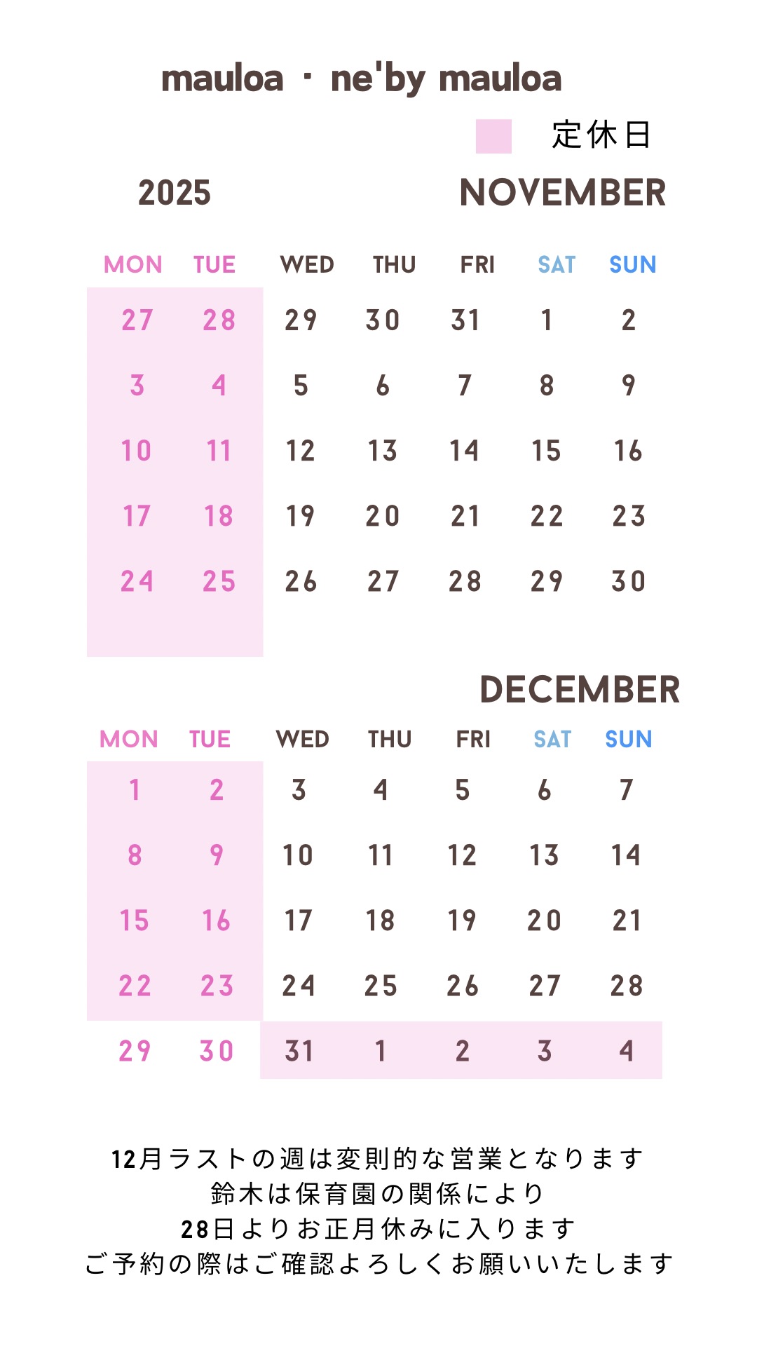 【両店舗・定休日】