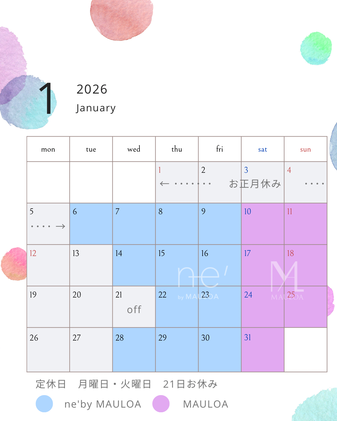 気になる方は是非 MAULOA・ne’by MAULOA にいらしてください