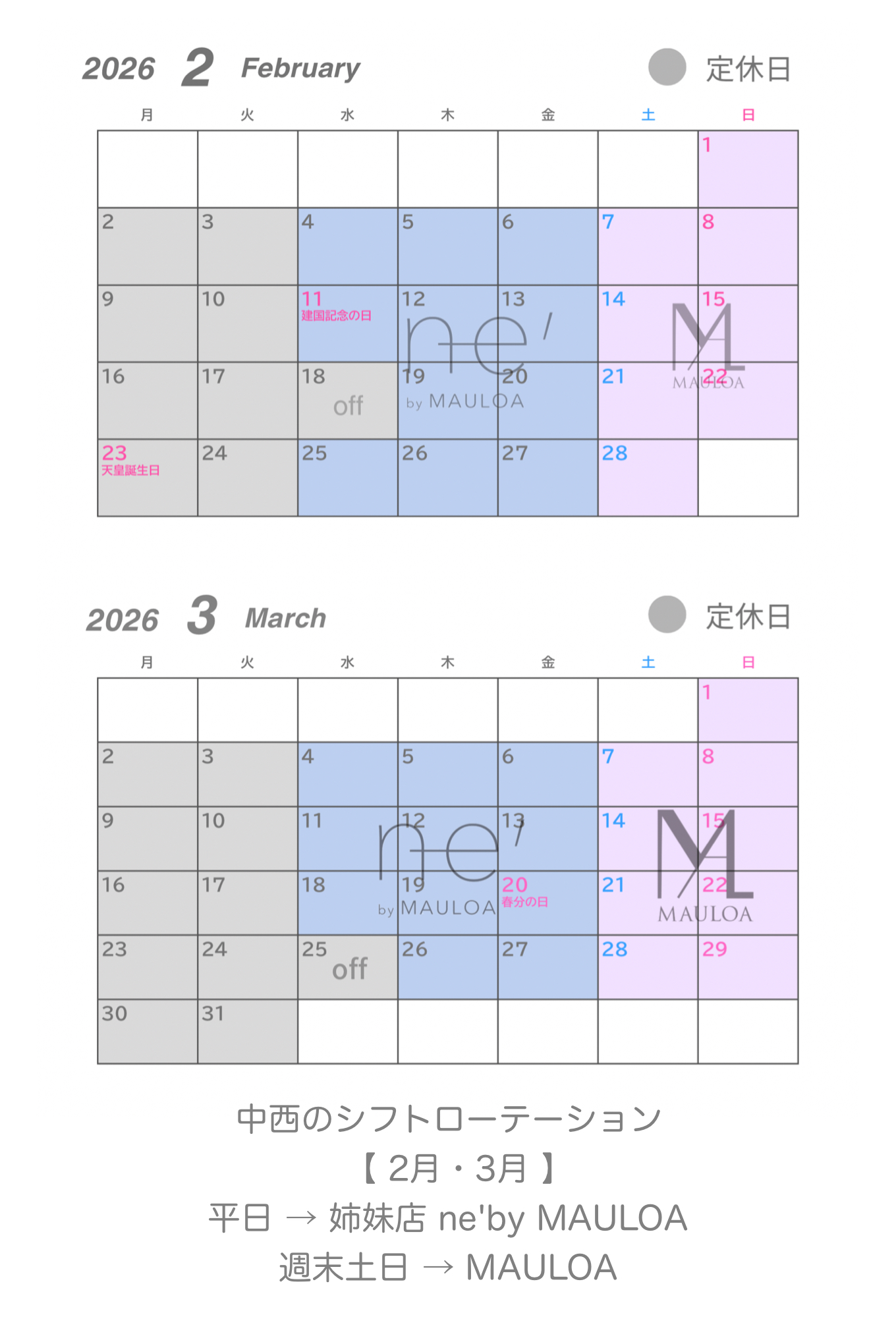 平日は姉妹店ne’by MAULOA です**